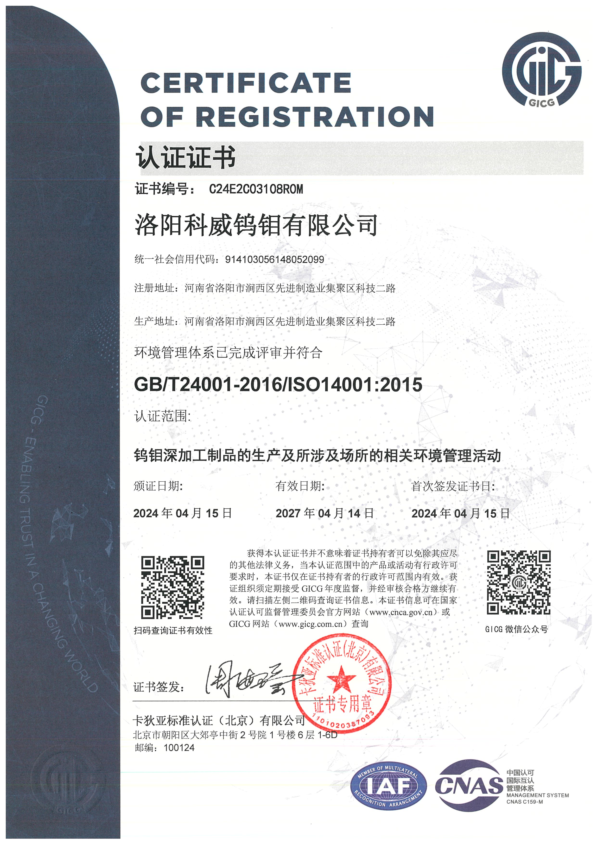 四、荣誉: “国家高新技术企业”, 国家专精特新重点“小巨人”企业, “国家科技型中小型企业”, “河南省钼及钼合金工程技术研究中心”, “有色金属省部共建协创中心理事单位”,“2025年河南省首批次新材料产品”,等。